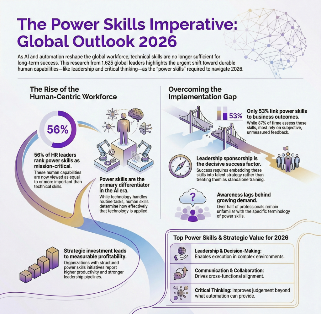 The future of work is no longer driven by technical expertise alone. As artificial intelligence, automation, and digital tools reshape roles across industries, power skills, the human capabilities that enable people to think, lead, adapt, and collaborate, have emerged as the most critical drivers of performance.